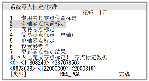 6. 選擇“2 全軸零點位置標定”,按下 F4 “是”。