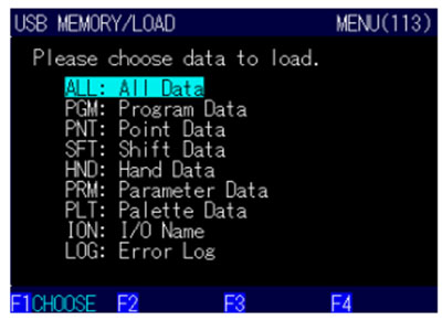 請通過光標鍵選擇要加載的數(shù)據(jù)種類,然后按下 F1