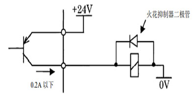 直接向繼電器、電磁閥類施加負載時,應將防反電動勢二極管與負載并聯連接起來。