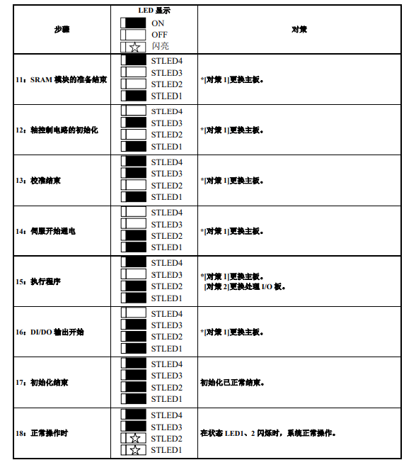 在接通電源后,步驟11開始依次按照步驟1、2、···的順序亮燈,出現(xiàn)不正常的情況時,在該步驟停下。
