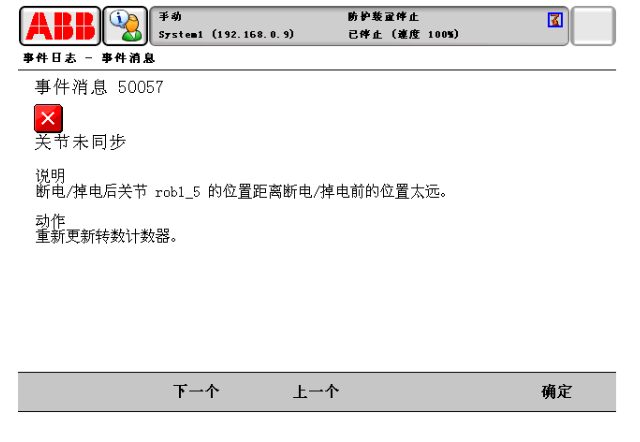 ABB機(jī)器人維修 報(bào)警代碼:50057(關(guān)節(jié)未同步)